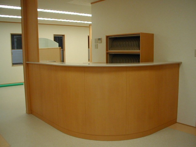 某歯科医院様へ設置させていただきました。 受付カウンターです。 材質、色、フロアの雰囲気に合わせ変更可能です。