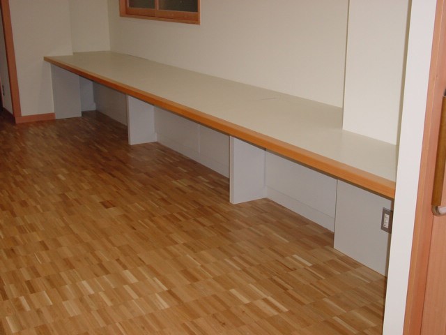 窓下や壁面に沿って設置することで、デッドスペースを多目的に活用できるカスタムカウンターです。シンプルなデザインで、オフィス、休憩スペース、待合室など、様々な空間に調和し、機能的な作業面・収納面を提供します。