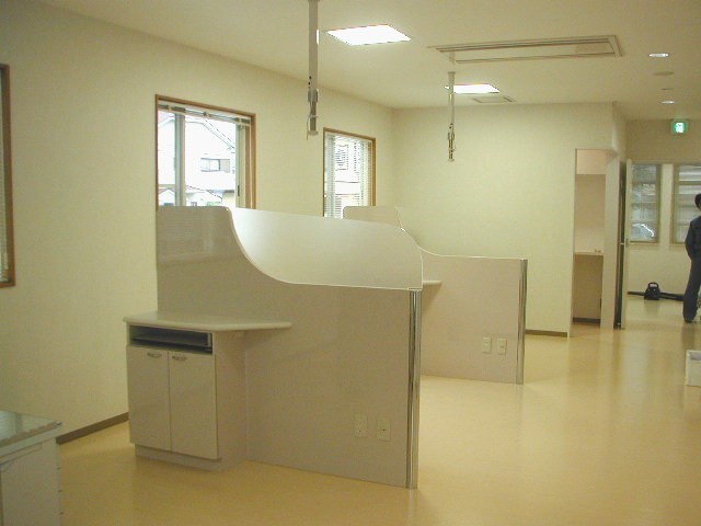 医療機関の受付や問診スペースにおける患者様のプライバシー保護を最優先に開発・導入しました。 自社制作の曲線デザイン間仕切りで、 「安心感」と「機能性」を両立。 患者様が安心して利用でき、スタッフの皆様が効率よく業務に集中できる、清潔感あふれる空間を実現しました。