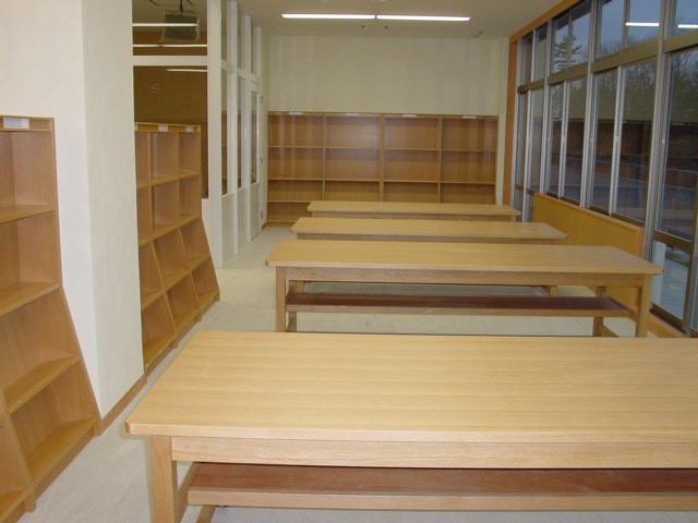 読書や自習、情報収集のための空間に、落ち着きと集中力をもたらす特注の閲覧台(テーブル)と書架(本棚)システムです。公共施設や学校の図書室など、長時間の利用を想定した高い耐久性と快適性を提供します。
